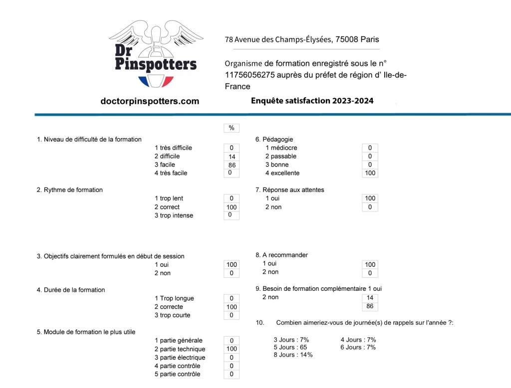Nous vous remercions d’avoir suivi notre formation « Sécurité – Réglages – Maintenance » sur Pinspotters.